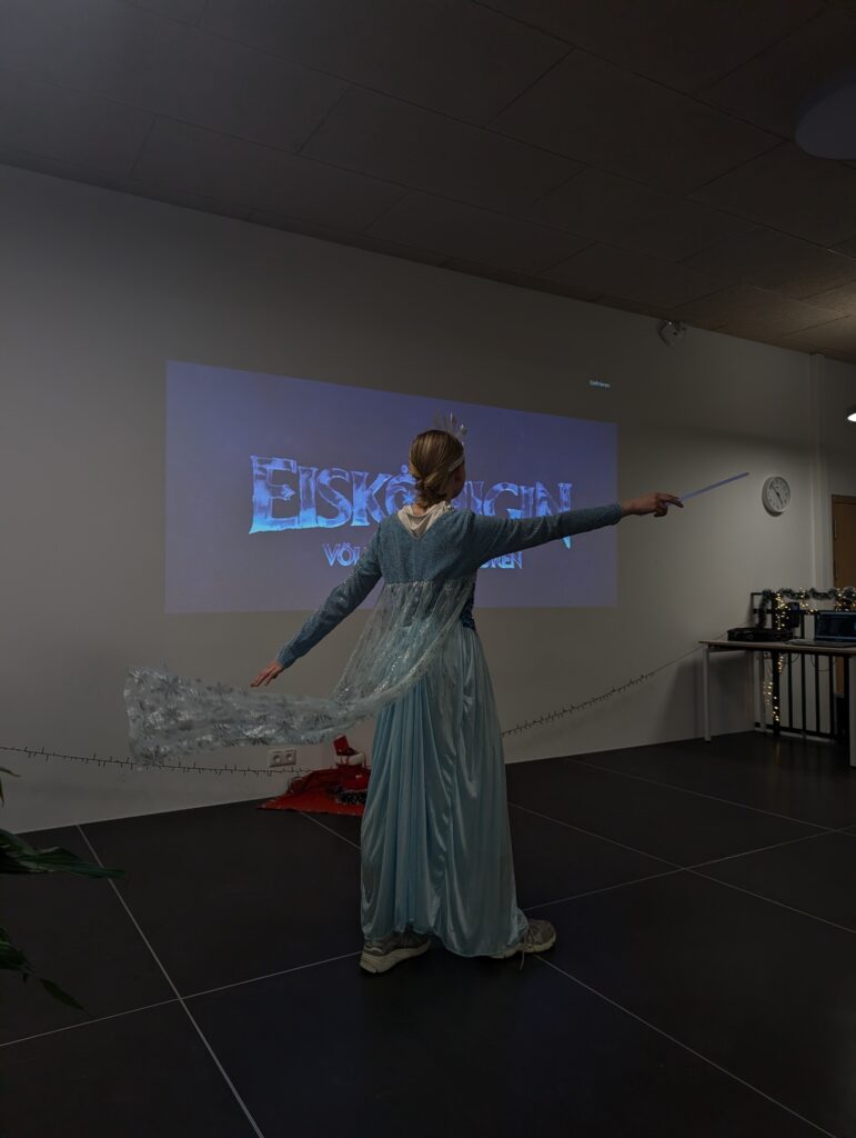 Am 11.12.2025 fand wieder unsere X-Mas Movie Night statt, die mittlerweile zu einer schönen Tradition an unserer Schule geworden ist. Gemeinsam schauten wir den Weihnachtsklassiker „Frozen“ und wurden dabei gleich zu Beginn von einer ganz besonderen Überraschung empfangen: Eine als Elsa verkleidete Schülerin begrüßte die Zuschauerinnen und Zuschauer und sorgte sofort für festliche Stimmung.